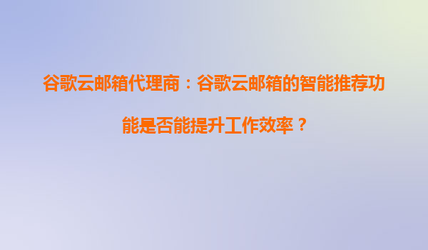 2025-08-28谷歌云郵箱代理商:谷歌云郵箱的智能推薦功能是否能提升工作效率? 引言 在當(dāng)今快節(jié)奏的商業(yè)環(huán)境中,高效的電子郵件管理是企業(yè)成功的關(guān)鍵因素之一。谷歌云郵箱...