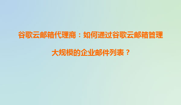 2025-08-28谷歌云郵箱代理商:如何通過谷歌云郵箱管理大規(guī)模的企業(yè)郵件列表 谷歌云郵箱的企業(yè)級優(yōu)勢 谷歌云郵箱(GoogleWorkspace)作為全球領(lǐng)先的企業(yè)郵件解決方案,憑借其高可靠性、安全性和可擴(kuò)展性,成為管理大...