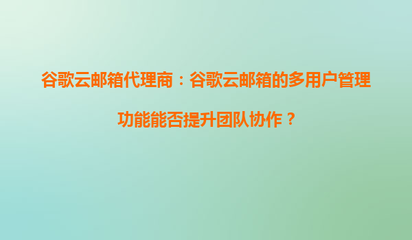 2025-08-28谷歌云郵箱代理商:谷歌云郵箱的多用戶管理功能能否提升團(tuán)隊協(xié)作? 在當(dāng)今數(shù)字化時代,高效的團(tuán)隊協(xié)作是企業(yè)成功的關(guān)鍵因素之一。而電子郵件作為最常用的溝通工具之一,其管理功能直接影響團(tuán)隊的協(xié)作效率。谷歌...