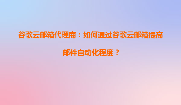 2025-08-28谷歌云郵箱代理商:如何通過谷歌云郵箱提高郵件自動化程度 引言:郵件自動化的商業(yè)價值 在數(shù)字化時代,郵件自動化已成為企業(yè)提升溝通效率、降低運營成本的核心工具。谷歌云郵箱(GoogleWorkspace)憑借其...