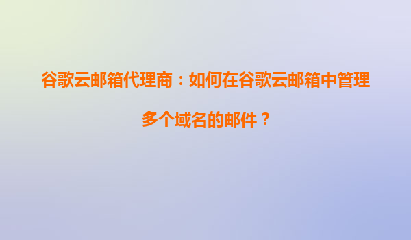 2025-08-27谷歌云郵箱代理商:如何在谷歌云郵箱中管理多個域名的郵件? 在當今數字化時代,企業通常需要管理多個域名的郵件系統,以滿足不同業務需求或品牌推廣的要求。谷歌云郵箱(GoogleWorkspace)作為全球領先的企業...
