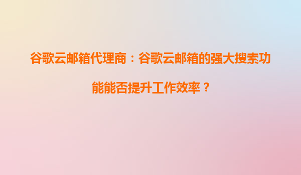 谷歌云郵箱代理商:谷歌云郵箱的強大搜索功能能否提升工作效率? 引言 在當今快節奏的商業環境中,高效的電子郵件管理已成為企業成功的關鍵因素之一。谷歌云郵...