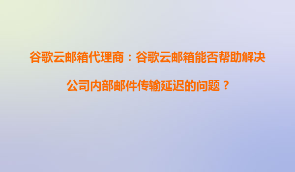 2025-08-27谷歌云郵箱代理商:谷歌云郵箱能否幫助解決公司內部郵件傳輸延遲的問題? 在現代企業中,高效的內部溝通是業務順利運行的關鍵。然而,許多公司常常面臨郵件傳輸延遲的問題,這不僅影響了工作效率,還可能導致重...