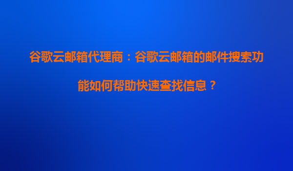 2025-08-26谷歌云郵箱代理商:谷歌云郵箱的郵件搜索功能如何幫助快速查找信息? 在當今快節奏的商業環境中,高效的信息檢索能力是企業提升生產力的關鍵。谷歌云郵箱(GoogleWorkspace中的Gmail)憑借其強大的郵件搜索功...