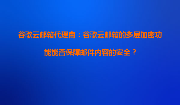 2025-08-26谷歌云郵箱代理商:谷歌云郵箱的多層加密功能能否保障郵件內容的安全? 一、谷歌云郵箱的多層加密技術解析 谷歌云郵箱(GoogleWorkspace)作為企業級電子郵件服務,采用了業界領先的多層加密技術來保障郵...