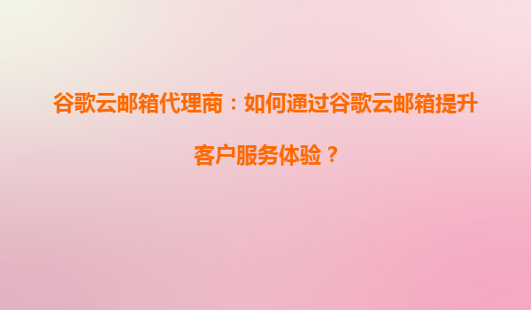 2025-08-26谷歌云郵箱代理商:如何通過谷歌云郵箱提升客戶服務體驗? 引言 在數字化時代,高效的客戶服務是企業成功的關鍵因素之一。作為谷歌云郵箱代理商,我們深知谷歌云郵箱(GoogleWorkspace...