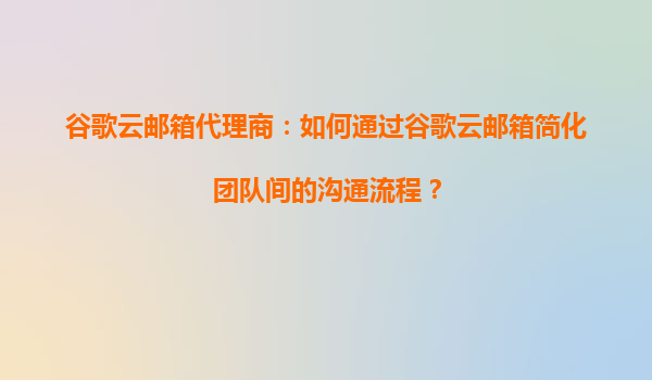 2025-08-22谷歌云郵箱代理商:如何通過谷歌云郵箱簡化團隊間的溝通流程? 一、高效協作的云端郵箱解決方案 谷歌云郵箱(GmailforBusiness)作為企業級郵件服務,通過無縫整合谷歌工作空間(GoogleWorkspace)工具,為...