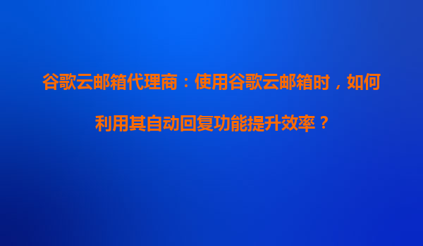 谷歌云郵箱代理商:使用谷歌云郵箱時,如何利用其自動回復功能提升效率? 一、谷歌云郵箱的自動回復功能概述 谷歌云郵箱(GmailforBusiness)作為企業級電子郵件解決方案,提供了強大的自動回復功能。這...