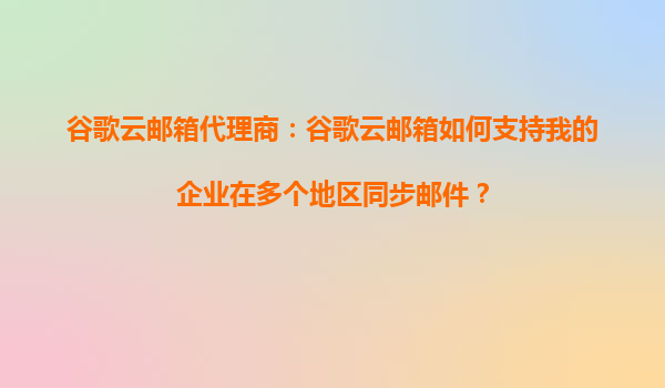 2025-08-23谷歌云郵箱代理商:谷歌云郵箱如何支持我的企業在多個地區同步郵件? 引言 在全球化的商業環境中,企業往往需要在多個地區開展業務,而高效的郵件通信系統是確保團隊協作順暢的關鍵。谷歌云郵箱(GoogleWo...
