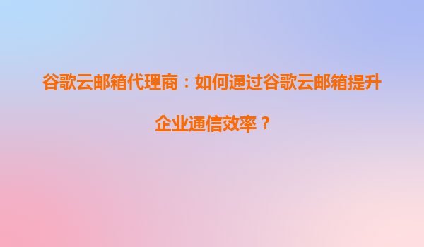 2025-08-22谷歌云郵箱代理商:如何通過谷歌云郵箱提升企業通信效率? 在當今快速發展的商業環境中,高效的企業通信是提升競爭力的關鍵因素之一。谷歌云郵箱(GoogleWorkspace,原GSuite)作為一款領先的企業級電子郵件...