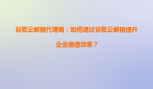 谷歌云郵箱代理商:如何利用谷歌云郵箱提升客戶支持服務的效率? 在當今數字化時代,企業客戶支持服務的效率直接影響客戶滿意度和品牌聲譽。作為專業的谷歌云郵箱代理商,我們深知谷歌云郵箱(GoogleWorkspace中的...