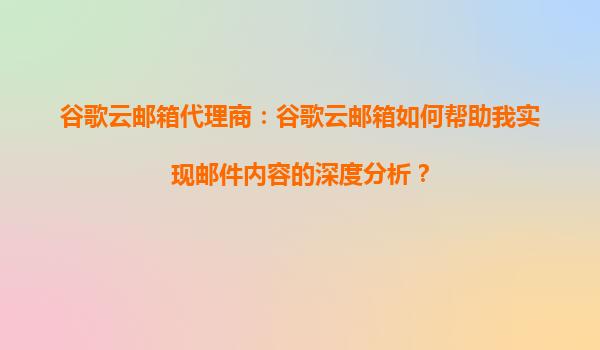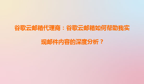 2025-08-21谷歌云郵箱代理商:谷歌云郵箱如何幫助我實現郵件內容的深度分析? 1.引言 在現代商業環境中,電子郵件不僅是溝通的工具,更是數據分析和業務決策的重要來源。谷歌云郵箱(GoogleWorkspace...