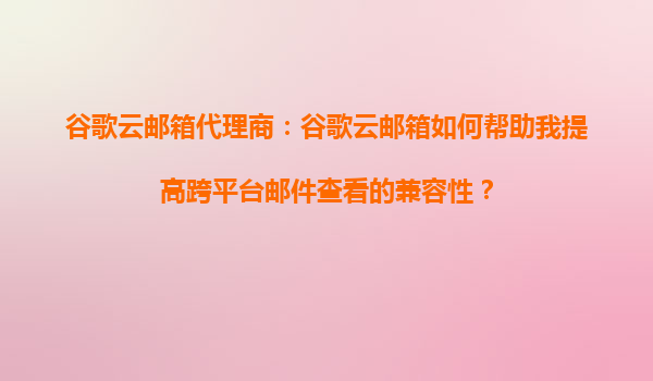2025-08-21谷歌云郵箱代理商:谷歌云郵箱如何幫助提高跨平臺郵件查看的兼容性? 一、引言 在現代商務環境中,電子郵件的跨平臺兼容性已成為企業和個人高效溝通的關鍵需求。由于用...