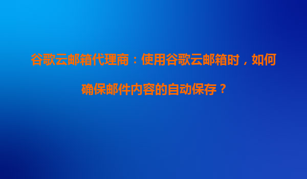 2025-08-21谷歌云郵箱代理商:使用谷歌云郵箱時,如何確保郵件內容的自動保存? 在當今數字化時代,電子郵件已成為企業和個人溝通的重要工具之一。然而,隨著郵件數量的增加,確保郵件內容的自動保存和備份變得至關重要。谷歌...