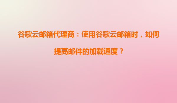 2025-08-19谷歌云郵箱代理商:使用谷歌云郵箱時,如何提高郵件的加載速度? 在當今快節奏的商業環境中,高效的郵件溝通是企業運營的重要組成部分。谷歌云郵箱(GoogleWorkspace郵箱)憑借其強大的功能和穩定的性能,已...
