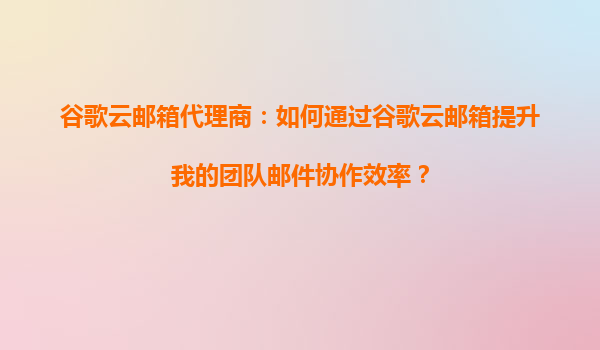 2025-08-19谷歌云郵箱代理商:如何通過谷歌云郵箱提升團隊郵件協作效率? 引言 在當今快節奏的商業環境中,高效的郵件協作已成為團隊生產力的核心。作為谷歌云郵箱代理商,我們深知谷歌云郵箱(Gmailw...