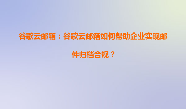 2025-08-19谷歌云郵箱如何幫助企業實現郵件歸檔合規 一、郵件歸檔合規的重要性 在當今數字化時代,企業郵件不僅是日常溝通的工具,更是重要的法律證據和商業記錄。許多行業如金融、醫療和法律等,都有嚴格的郵件歸檔...
