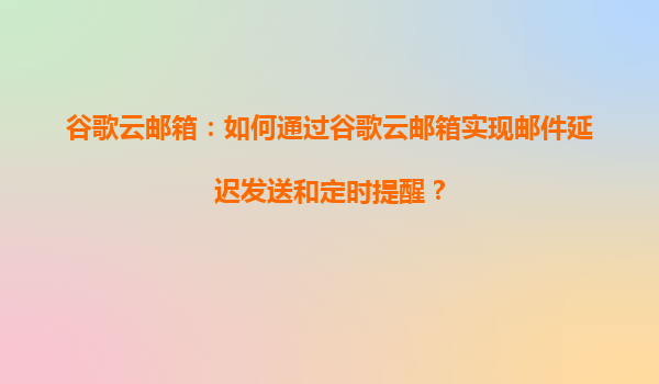 如何通過谷歌云郵箱實現郵件延遲發送和定時提醒? 一、谷歌云郵箱的優勢與核心功能 谷歌云郵箱(GmailwithGoogleWorkspace)作為企業級郵件解決方案,不僅具備普通Gmail的高效穩定性,還深度融合了谷歌...