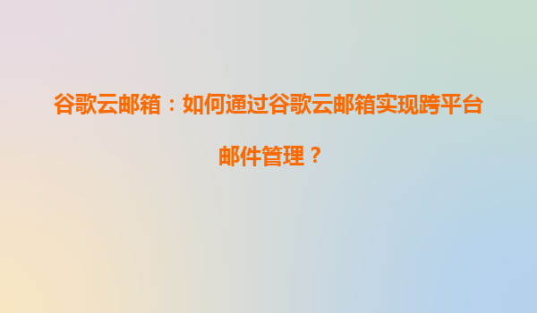 2025-08-18谷歌云郵箱:如何通過谷歌云郵箱實現跨平臺郵件管理? 引言 在當今數字化時代,電子郵件已成為個人和企業溝通的重要工具。隨著工作和生活的多平臺化,如何高效管理跨平臺郵件成為許多用戶的需求。谷歌云郵...