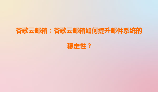 2025-08-18谷歌云郵箱:如何提升郵件系統的穩定性 在當今數字化時代,電子郵件已成為企業和個人溝通的重要工具。郵件系統的穩定性直接影響工作效率和用戶體驗。谷歌云郵箱(GoogleWorkspace,原GSuite)作為全球領...