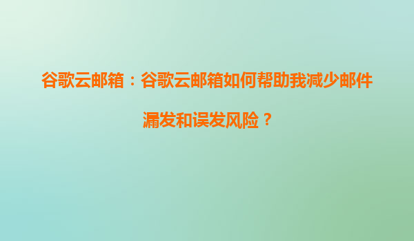 谷歌云郵箱:如何幫助您減少郵件漏發和誤發風險在現代商務溝通中,電子郵件是不可或缺的工具,但郵件漏發或誤發可能導致嚴重的后果,如客戶流失、項目延誤甚至法律糾紛。谷歌云郵箱(GoogleWorkspace郵箱)憑...