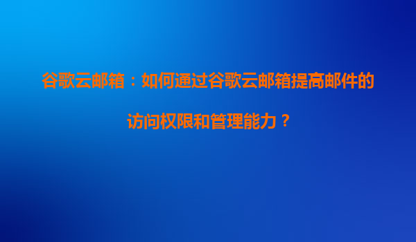 2025-08-16谷歌云郵箱簡介 谷歌云郵箱(GoogleWorkspace)是谷歌為企業用戶提供的一款專業郵件管理解決方案。它不僅繼承了Gmail的高效與穩定性,還融合了谷歌云的技術優勢,能夠輕松應對高并發、大規模的郵件處理需求。無論是...