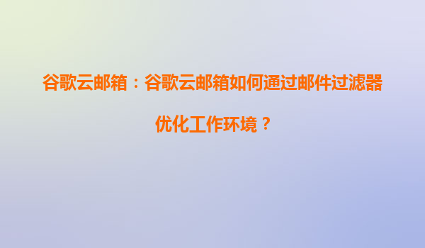 2025-08-16谷歌云郵箱:如何通過郵件過濾器優化工作環境 引言 在現代工作中,電子郵件是溝通的核心工具之一。然而,隨著郵件數量的增加,管理收件箱可能成為一項繁重的任務。谷歌云郵箱(GoogleWor...