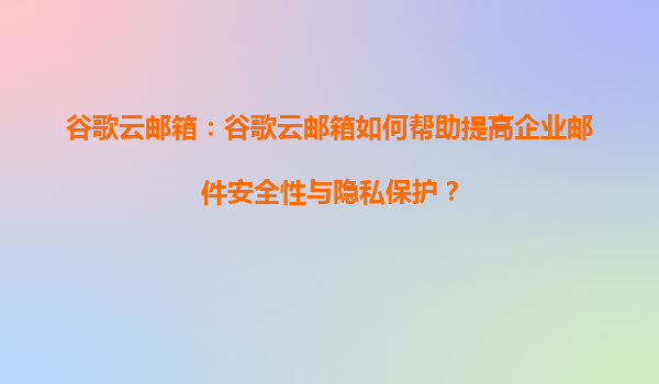 2025-08-16谷歌云郵箱:如何幫助企業提升郵件安全性與隱私保護 一、企業郵件安全與隱私保護的挑戰 在數字化辦公時代,企業郵箱已成為商業溝通的核心工具,但同時也面臨諸多安全威脅:釣魚郵件、惡...