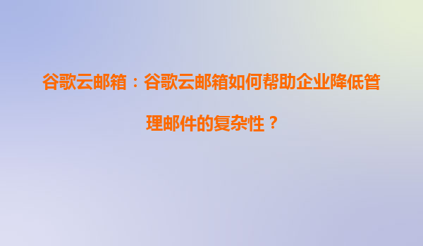 2025-08-14谷歌云郵箱如何幫助企業降低管理郵件的復雜性 在當今快節奏的商業環境中,電子郵件仍然是企業溝通的核心工具之一。然而,隨著業務規模的擴大和團隊成員的增加,電子郵件管理往往會變得復雜且耗時。谷歌云郵箱...