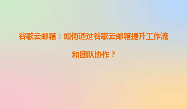 2025-08-14谷歌云郵箱:如何通過谷歌云郵箱提升工作流和團隊協作? 一、谷歌云郵箱的核心優勢 谷歌云郵箱(GmailforBusiness)作為谷歌工作空間(GoogleWorkspace)的核心組件,憑借以下優勢成...