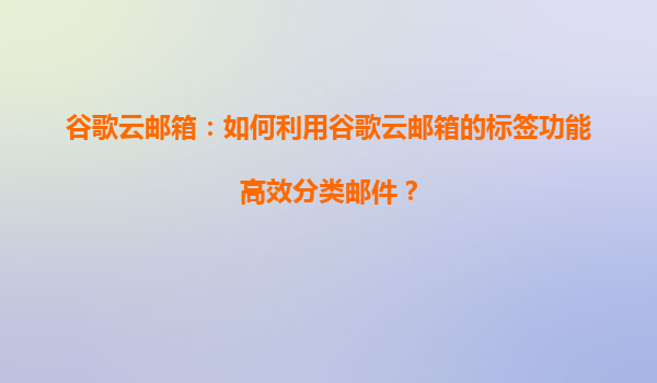 2025-08-15谷歌云郵箱:如何利用標簽功能高效分類郵件? 一、谷歌云郵箱標簽功能介紹 谷歌云郵箱(Gmail作為核心組件)的標簽功能是其郵件管理的核心優勢之一。與傳統文件夾不同,標簽允許用戶為郵件添加多個分類標識,實現多...