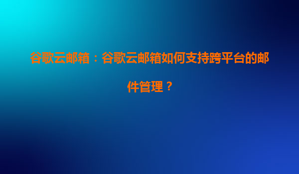 谷歌云郵箱如何支持跨平臺的郵件管理 一、無縫的多設備同步體驗 谷歌云郵箱(Gmail)通過云端技術實現多終端實時同步,用戶無論使用Windows、Mac、iOS還是Android設備,登錄同一賬號即可隨時訪問最新郵件。...