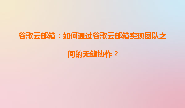 2025-08-14谷歌云郵箱:如何通過谷歌云郵箱實現團隊之間的無縫協作? 引言 在現代企業中,團隊協作的效率直接影響著業務的發展。谷歌云郵箱(Gmail)作為全球領先的企業郵件服務之一,不僅提供了強大的郵件管理功...