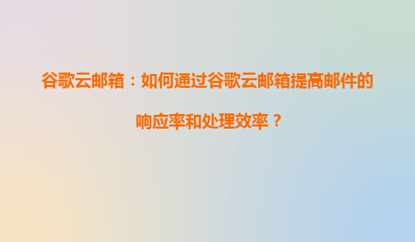 2025-08-14谷歌云郵箱:如何通過谷歌云郵箱提高郵件的響應率和處理效率? 引言 在當今快節奏的商業環境中,郵件的響應速度和處理效率直接影響著工作效率和客戶滿意度。谷歌云郵箱(GoogleWorkspace中的Gm...