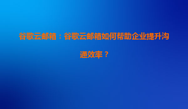 2025-08-14谷歌云郵箱:如何幫助企業提升溝通效率 引言 在當今快節奏的商業環境中,高效溝通是企業成功的關鍵。谷歌云郵箱(GmailforBusiness)作為谷歌云(GoogleCloud)的核心服務之一,憑借其強大的功能和穩定...