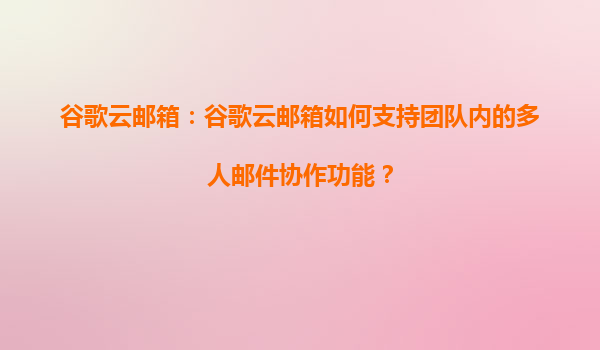 2025-08-14谷歌云郵箱如何賦能團隊高效郵件協作 一、實時共享與共同編輯 谷歌云郵箱(Gmail)與GoogleWorkspace深度集成,支持團隊成員實時共享郵箱權限。通過簡單的權限設置,成員可共同管理指定標簽下的郵件(如客...