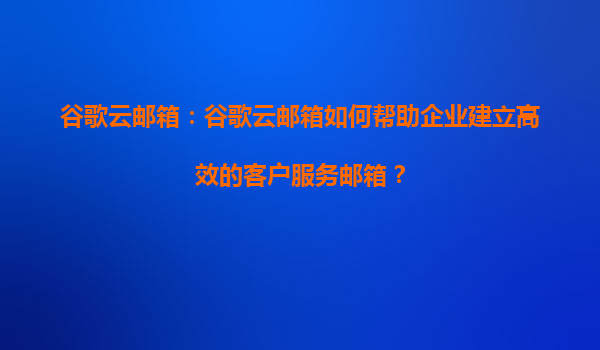 2025-08-14谷歌云郵箱如何幫助企業建立高效的客戶服務郵箱? 一、引言 在當今數字化時代,客戶服務是企業成功的關鍵因素之一。高效的客戶服務不僅能提升客戶滿意度,還能增強品牌忠誠度。而一個專業的客戶服務郵箱系統則是實...