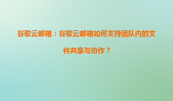 2025-08-13谷歌云郵箱:團隊文件共享與協作的高效解決方案 引言 在現代工作環境中,高效的文件共享與協作是團隊成功的關鍵因素之一。谷歌云郵箱(GmailwithGoogleWorks...