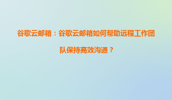 2025-08-13谷歌云郵箱:谷歌云郵箱如何幫助遠程工作團隊保持高效溝通? 引言 隨著遠程工作的普及,高效溝通工具成為團隊協作的關鍵。谷歌云郵箱(Gmail)作為谷歌云(GoogleCloud)的核心服務之一,憑借其強大的功能...