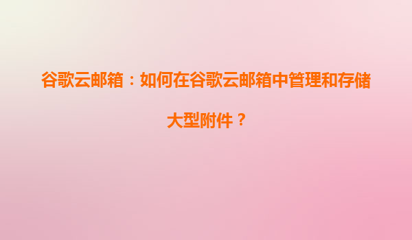 2025-08-13高效管理大型附件:谷歌云郵箱的智能存儲方案 在現代辦公場景中,大型文件傳輸已成為剛需。谷歌云郵箱(GmailwithGoogleWorkspace)通過深度整合GoogleDrive云存儲,為用戶提供了遠超傳統郵箱附件限制的解決方...