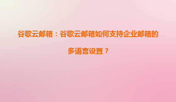 2025-08-13谷歌云郵箱如何支持企業郵箱的多語言設置? 一、谷歌云郵箱的企業級多語言支持概述 谷歌云郵箱(GoogleWorkspace)作為全球領先的企業郵箱解決方案,天然支持多語言環境。企業用戶可通過統一...
