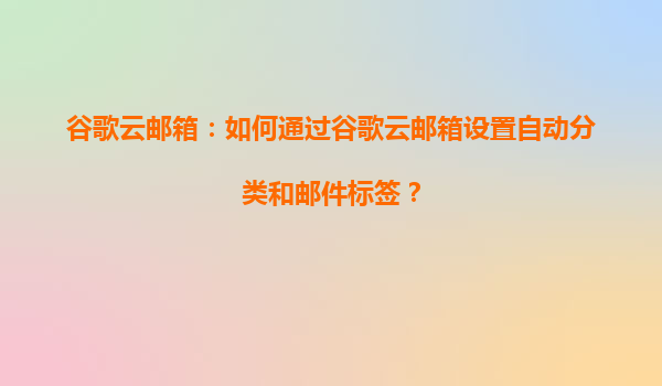 2025-08-13谷歌云郵箱的智能化管理:自動分類與標簽設置指南 谷歌云郵箱(Gmail)作為全球領先的電子郵件服務之一,憑借其強大的云計算基礎設施和智能化功能,為用戶提供了高效、安全的郵件管理體驗。本文將詳細介紹如何通過...