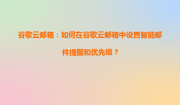 谷歌云郵箱:如何在谷歌云郵箱中設置智能郵件提醒和優先級? 前言 谷歌云郵箱(Gmail)作為全球最受歡迎的電子郵件服務之一,憑借其強大的功能和靈活的定制性,成為企業和個人用戶的首選。它不僅提供了...