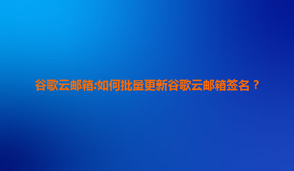 2025-08-06谷歌云郵箱:如何批量更新谷歌云郵箱簽名? 在當今數字化辦公環境中,企業郵箱簽名不僅是個人身份的延伸,更是品牌形象的重要展示窗口。谷歌云郵箱(GmailforBusiness)作為全球領先的企業郵箱解決方案,憑借...
