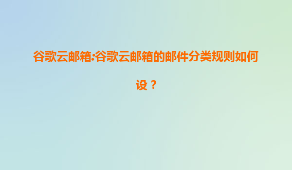 2025-08-07谷歌云郵箱郵件分類規則設置指南 智能分類:高效管理郵件的核心功能 谷歌云郵箱(Gmail)通過機器學習技術自動將郵件分為"主要"、"社交"、"促銷"和"更新"四大類。這種基于用戶行為分析的分類系統能準確識別95%以...