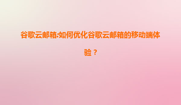 2025-08-06如何優化谷歌云郵箱的移動端體驗? 隨著移動設備的普及,越來越多的用戶選擇在手機或平板上處理郵件。谷歌云郵箱(Gmail)作為全球領先的電子郵件服務之一,其移動端體驗直接影響用戶的工作效率。本文將結合谷...