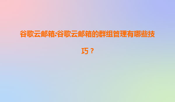 2025-08-06谷歌云郵箱群組管理技巧與最佳實踐 一、谷歌云郵箱群組管理的核心優勢 谷歌云郵箱(GoogleWorkspace)的群組管理功能依托于谷歌強大的云計算基礎設施,具備以下獨特優勢: 無縫集成生態:與G...