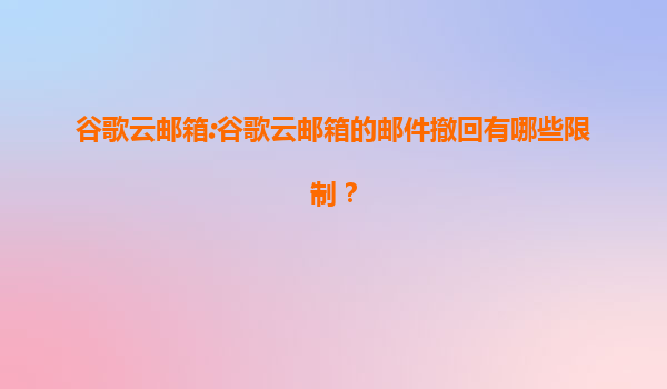 2025-08-05谷歌云郵箱郵件撤回功能詳解:優勢與限制 一、谷歌云郵箱的郵件撤回功能 谷歌云郵箱(GoogleWorkspace郵箱)提供了一項實用的“郵件撤回”功能,允許用戶在特...