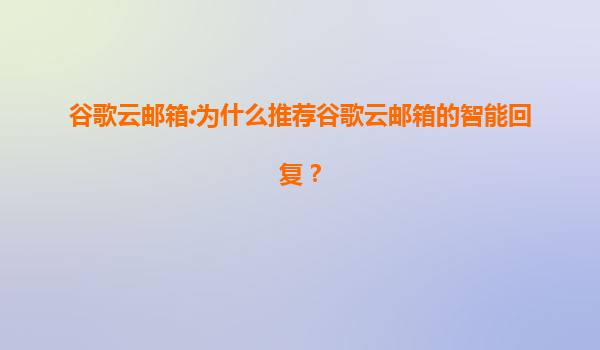 2025-08-04谷歌云郵箱:為什么推薦谷歌云郵箱的智能回復? 一、谷歌云郵箱的智能回復功能簡介 谷歌云郵箱(Gmail)作為全球領先的電子郵件服務之一,憑借其強大的云計算基礎設施和人工智能技術,為用戶提供了諸多高效...