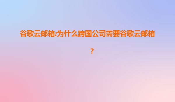 2025-08-04谷歌云郵箱:為什么跨國公司需要谷歌云郵箱? 一、全球化協作的無縫連接 跨國公司通常擁有分布在全球各地的團隊,高效的溝通工具是業務順利運行的關鍵。谷歌云郵箱(GmailforBusiness)作為谷歌工作空間...
